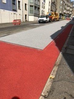 The application of coloured surfacing material is a simple and effective way to visually mark out specific areas of the highway to reinforce the message of conventional road markings or signs and reduce dangerous traffic contraventions into specific areas. We use anti-skid surfacing that enhances the skid resistance value of the road surface giving lower breaking distances in both dry and wet conditions. Our coloured high friction products are ideal for bus lanes, cycle paths, busy junctions, pedestrian routes and rail crossings.